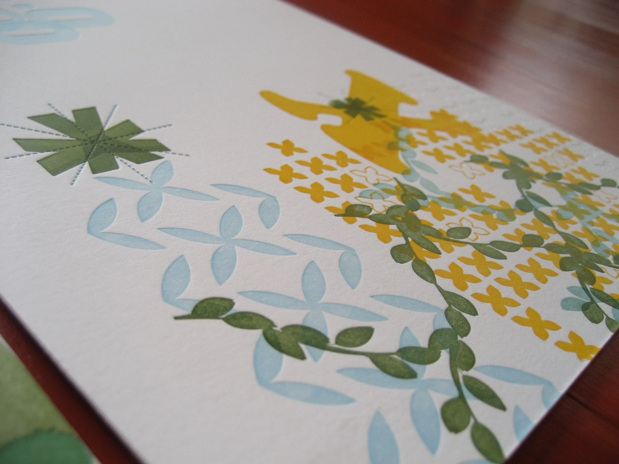 A take home set of collaboratively printed greeting cards from the retreat