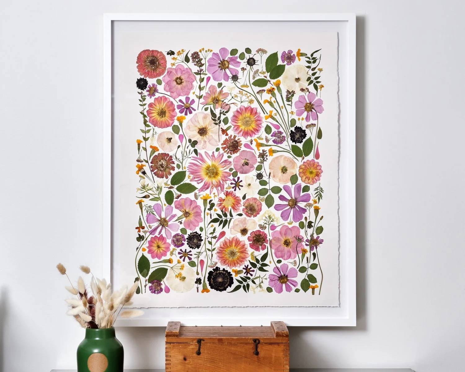 Our pressed flower adventure started with flowers grown in our backyard urban garden in Denver, CO. In Spring 2020, we started pressing poppies and other wildflowers from seeds we scattered in our yard and Keith learned how to make frames from scrap wood.